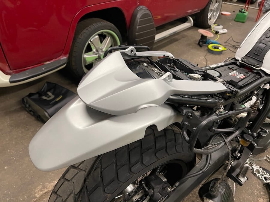 The standard rear fender or mudguard is available in "ice" which is the perfect colour to match the aluminium version that I'm removing.